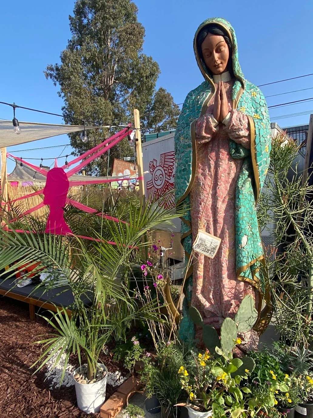 Self Help Graphic & Art’s iconic Virgen de Guadalupe greeted visitors at the garden’s entrance.